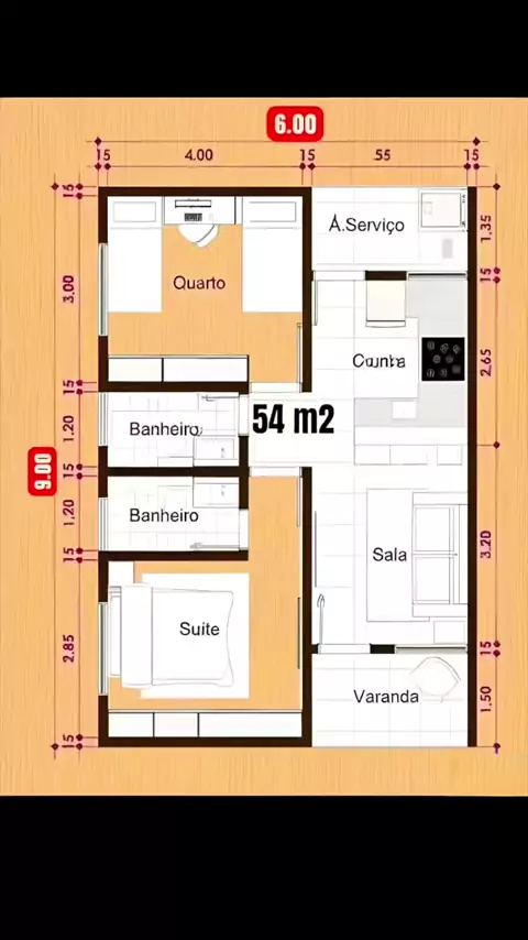 planta baixa de casa 6x9 com dois quartos sendo um com suíte #ronaldosantiagoconstrução #plantasdecasas #projetodecasamoderna #plantadekitnets