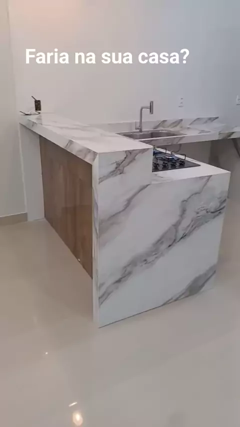 Bancada de cozinha americana em porcelanato #ronaldosantiagoconstrução #projetodecasamoderna #plantadekitnets #bancadasdeporcelanato