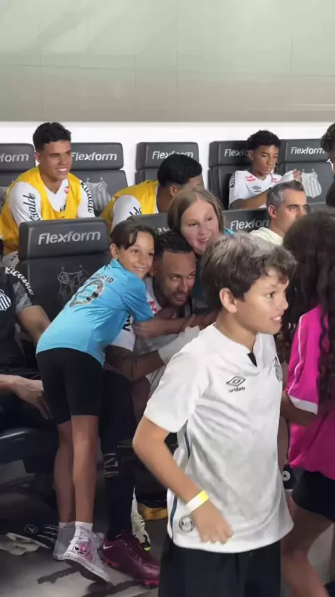 “O meu nome é Neymar também” 😂😂😂 O Príncipe se divertiu com a criançada. 🤍🖤 #Santos #SantosFC #Kwai #Neymar #NeymarJr