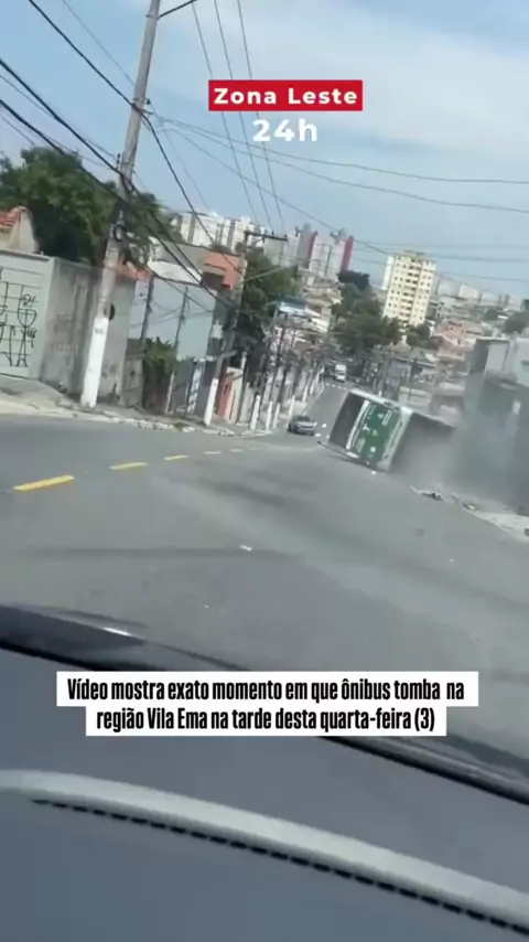Momentos de terror ontem, quarta-feira (03/12) na Zona Leste de São Paulo. Um ônibus tombou na tarde desta quarta-feira (3) após o motorista perder o controle do veículo na Rua Solidônio Leite, na altura do número 1650, na região da Vila Ema, Zona Leste de São Paulo. Segundo informações preliminares, o ônibus teria perdido o freio enquanto descia a via, o que fez o motorista não conseguir evitar o capotamento. O momento exato do acidente foi registrado por um motorista que passava de carro...