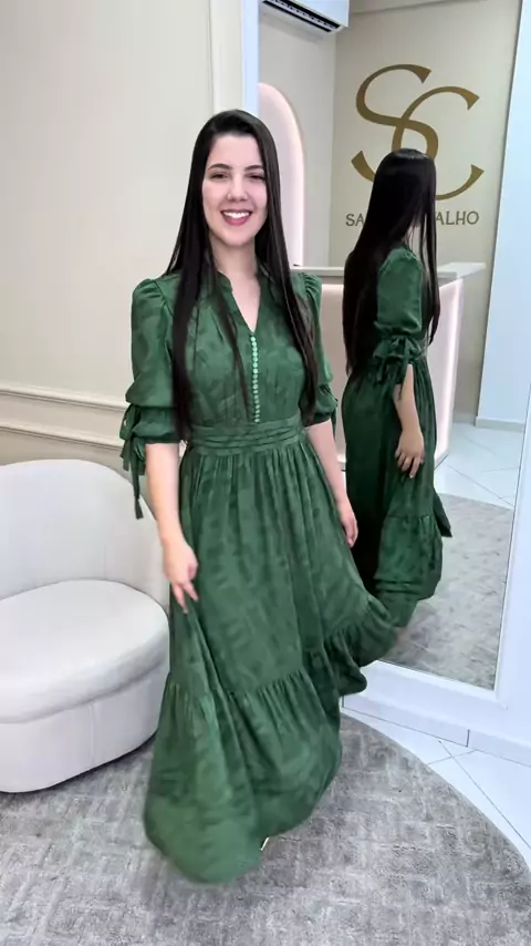 Vestido Noemi - Verde 👗 Compras ou mais informações através do WhatsApp 45 991447800 ou site www.saracarvalhobrand.com.br #vestidos #modamodesta #look