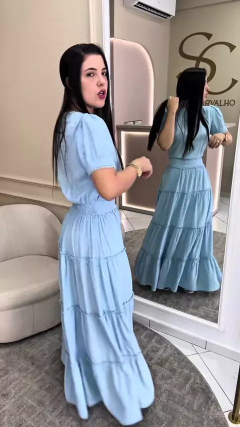 Vestido Vagnélia no Azul Serenity 🩵 #vestidos #modamodesta #look