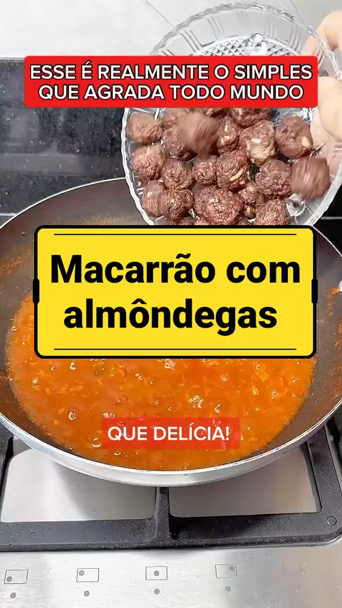 MACARRÃO COM ALMÔNDEGA Ingredientes 200 g de carne moída molho de tomate 2 tomates maduros 1/2 pimentão vermelho 1/2 cebola para o molho e carne espaguete fininho Temperos: alho socado com sal salsa, cebola, bacon sal a gosto #MusadosOvos #macarrão #almoçodehoje #comidaboa #Comida