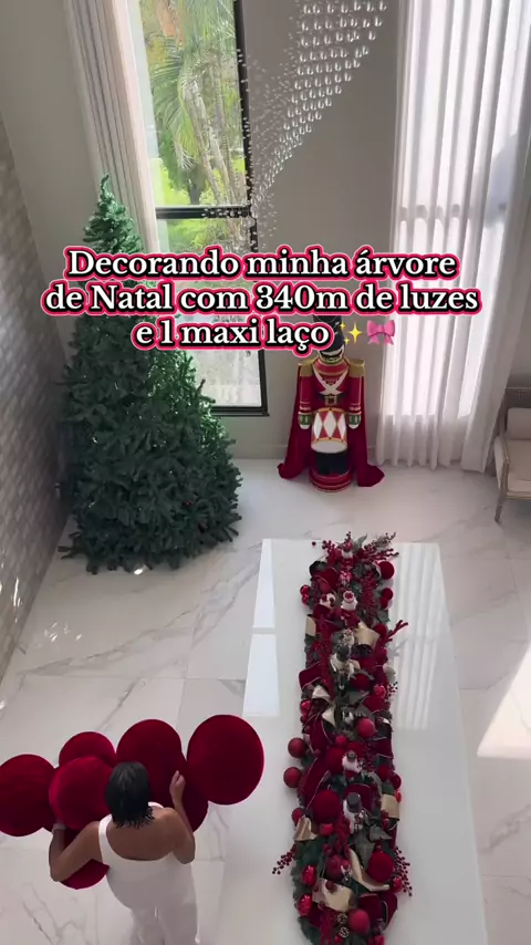 ✨ Utilizei: • 85 espigas • 340 m de luzes • 1 maxi laço de 240 cm • 32 bolas de 12 cm • 24 bolas de 15 cm • 8 bolas de 25 cm • 8 bolas GG feitas com bolas de praia #fyp #viral #asmr #decor #Natal