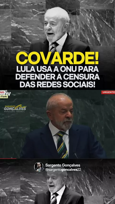 Em pleno discurso na ONU, Lula mais uma vez deixou claro de que lado está: contra a liberdade de expressão do povo brasileiro.