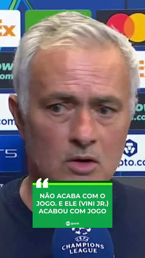 O técnico do Benfica, José Mourinho, questionou a comemoração de Vini Jr. e afirmou que o brasileiro "acabou com o jogo" 🗣 #ChampionsNoSBT #vinijr