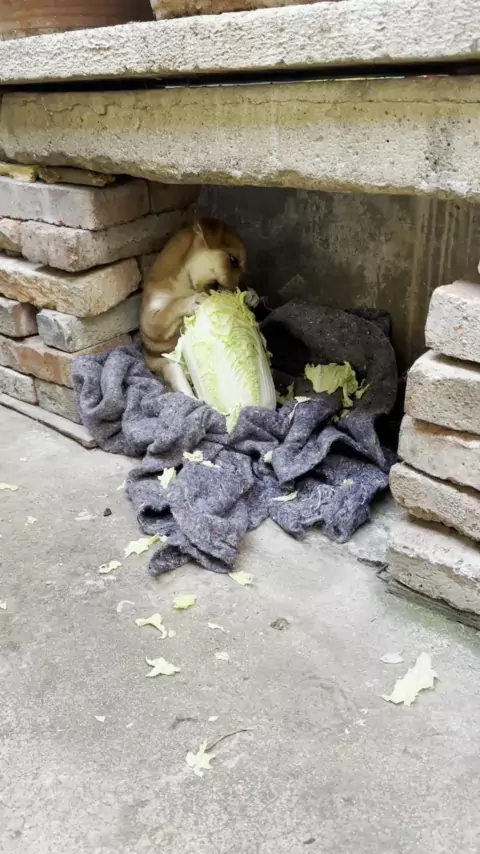 Cão está comendo repolho no ninho do cão.
