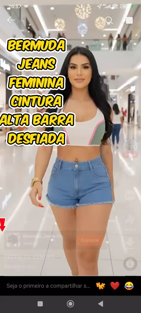 Bermuda Jeans Feminina Cintura Alta Barra Desfiada Tecido Premium Casual