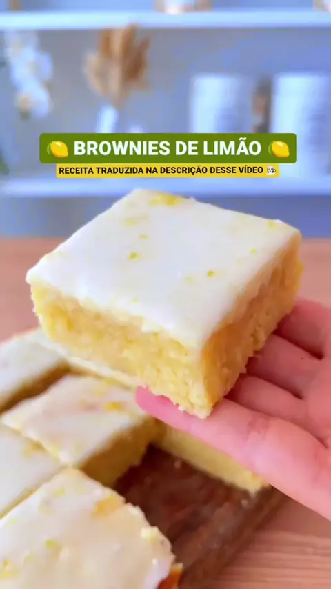 RECEITA DO BROWNIES DE LIMÃO 🍋👇 Ingredientes: 👇 160g de açúcar 160g de manteiga amolecida 1 colher de sopa de raspas de limão 50ml de suco de limão 250g de farinha + uma pitada de sal 1/2 colher de fermento em pó 2 ovos Para a cobertura: 👇 90g de açúcar de confeiteiro raspas de limão 2 limões espremidos e coados (suco de limão)