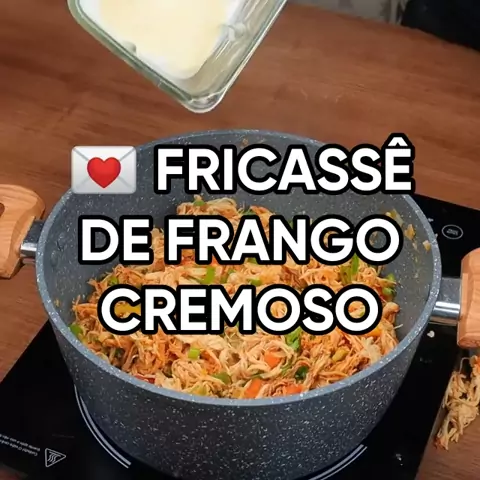 💌 FRICASSÊ DE FRANGO CREMOSO ♦ #Carnes 🎂 INGREDIENTES • 2 latas de milho • 400g de requeijão • 200g de creme de leite • Azeite • 1 cebola • 3 dentes de alho • 1kg de frango • 2 tomates picados • Sal a gosto • 1 colher de sopa de extrato de tomate • 1/2 pimentão picado • Azeitona a gosto • Pimenta do reino a gosto • Páprica a gosto • Cheiro verde a gosto • 300g de mussarela • Batata palha ════════❤️════════ 🥧 Segredos da Cozinha