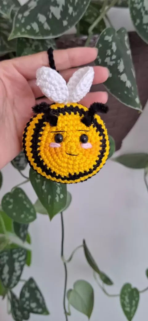 Para tudo, para tudo!! Em tempos de Queen Be no Brasil que tal essa pequena abelhinha pra chamar de sua? Ela é fofa, ela é artesanal e está disponível pra você adotar. Gostosa de apertar para quem gosta de objetos squish. Olha o detalhe dessas antenas! Socorro, eu não aguento tanta fofura. Ela tem em torno de 22 centímetros de diâmetro. Perfeita para chaveiros/pingentes. #croche #amigurumi #artesanato #feitoamao #handmade