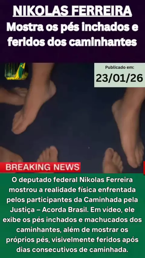 O registro reforça o caráter de resistência, perseverança e mobilização popular da caminhada rumo a Brasília, que tem ganhado grande repercussão nas redes sociais. 📢 Acompanhe, compartilhe e fique por dentro de cada etapa da Caminhada pela Justiça. 👍 Curta 🔁 Compartilhe 🔔 Inscreva-se no canal nikolas ferreira nikolas ferreira caminhada caminhada pela justiça acorda brasil nikolas ferreira hoje nikolas ferreira ferido pés machucados nikolas ferreira caminhada rumo a brasilia protesto b