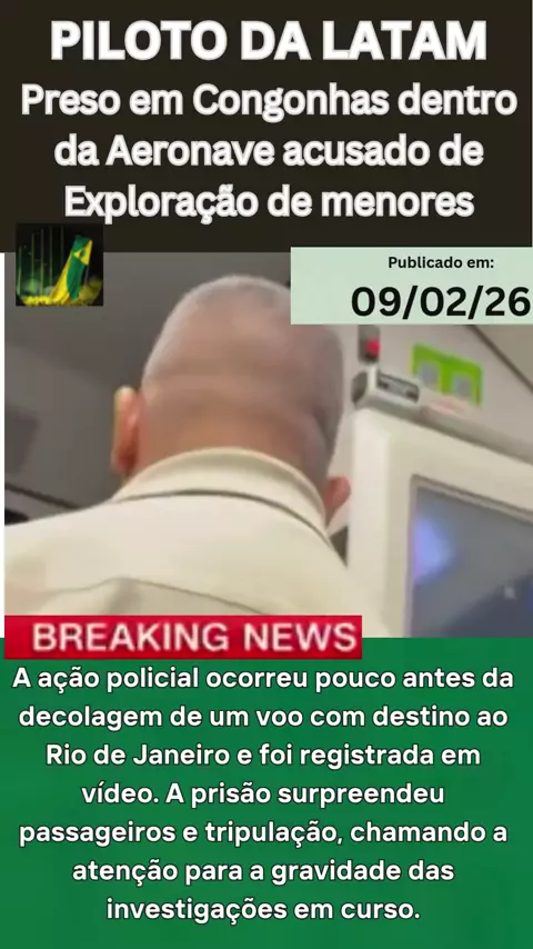 Piloto é Preso Dentro de Avião em Congonhas Suspeito de Integrar Rede de Exploração Infantil A exploração sexual de menores é crime previsto no Estatuto da Criança e do Adolescente (ECA) e no Código Penal Brasileiro, com penas severas. O caso agora segue sob investigação das autoridades competentes. Este conteúdo tem caráter informativo, com base em informações divulgadas por fontes oficiais e pela imprensa. #Congonhas #Prisão #Polícia #ExploraçãoInfantil #NotíciaUrgente piloto preso, pr