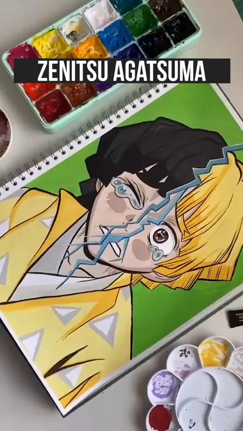 Siapa yang suka ngetawain si Zenitsu nih, kadang dia suka sedih juga lhoo #animepainting #painting #melukis