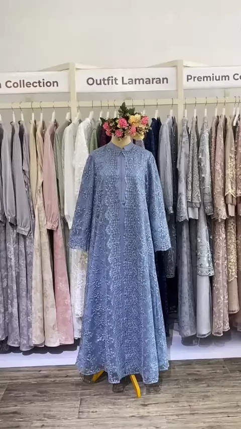 Siapa pecinta warna denim?☝🏻 Tampilan cantik Serafina Dress warna Denim siap menemani moment spesialmu💙✨#bajukondangan#butikkarawang#bajubrukat#bajulamaran#seragamnikah