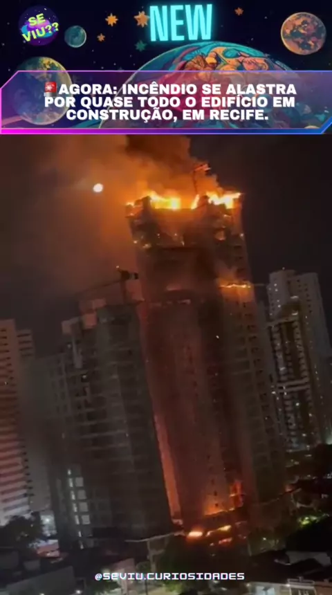 🚨AGORA: Incêndio se alastra por quase todo o edifício em construção, em Recife.