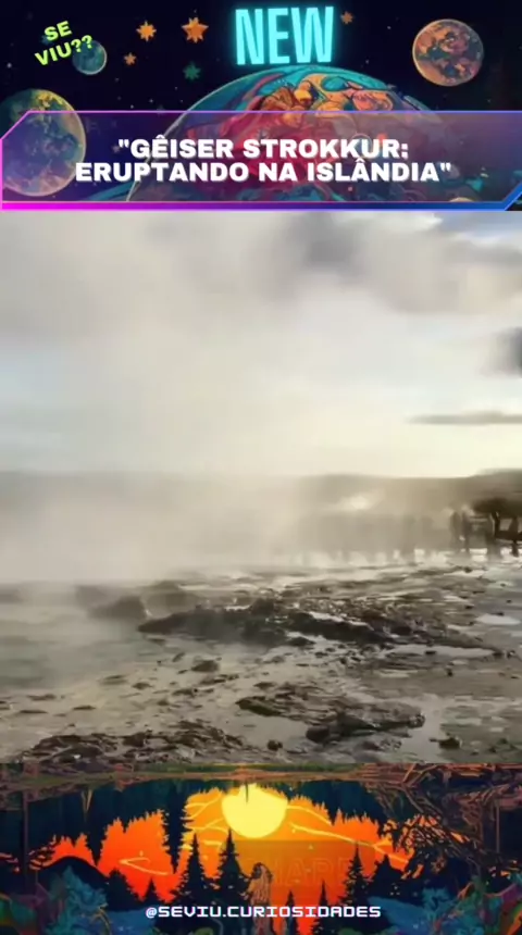 "Explore a maravilha natural do gêiser Strokkur na Islândia! Com erupções frequentes a cada 4 a 6 minutos, esta maravilha lança água até 30 metros no ar. Prepare-se para se surpreender com a beleza da natureza! 💦🌋 #Strokkur #Gêiser #Islândia #NaturezaSelvagem"