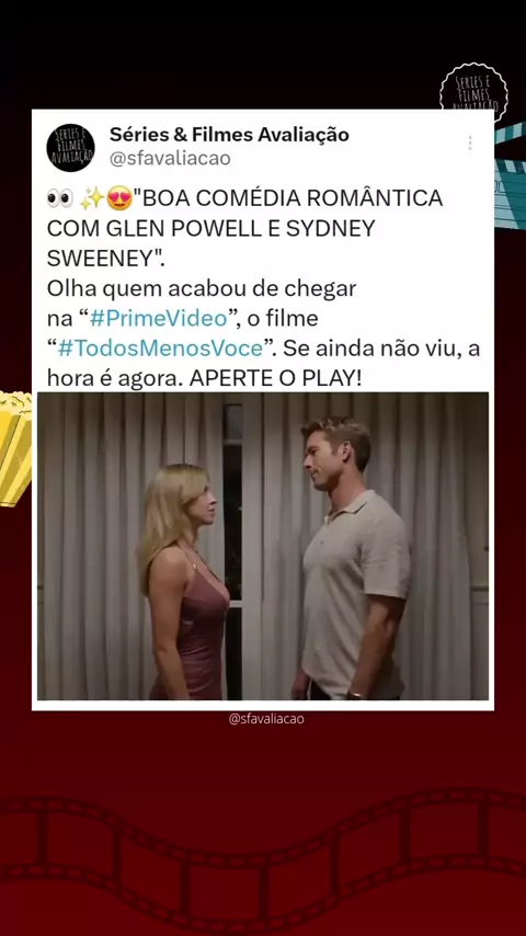😍"BOA COMÉDIA ROMÂNTICA COM GLEN POWELL E SYDNEY SWEENEY". Já viram? De 0 a 10, qual a sua nota?  16 anos • 2023 • Comédia/Romance • 1h43m 🗣Sinopse: Bea e Ben têm um primeiro encontro incrível, mas a atração inicial logo se torna ódio mútuo. Um casamento na Austrália força a aproximação dos dois, que decidem fingir um relacionamento para enganar a família e os amigos. 📷/📽 ( Sony Pictures ) #sfavaliacao #TodosMenosVoce #PrimeVideo #Filme #Filmes
