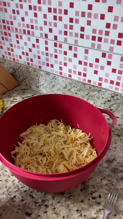TORTA DE FRANGO FÁCIL! Pro recheio eu usei: 1kg de frango cozido e desfiado, 1 sachê de molho de tomate, 50g de azeitona, 1 lata de milho, meio pote de requeijão e salsinha a gosto. Para massa eu usei: 3 ovos, 2 xícaras de leite, meia xícara de óleo, sal, meia cebola, 2 xícaras de farinha de trigo e 1 colher de sopa de fermento. Montagem: Coloque em um refratário metade da massa no fundo, e seguida todo o recheio de frango. Por cima coloque requeijão e queijo e por fim o restante da m