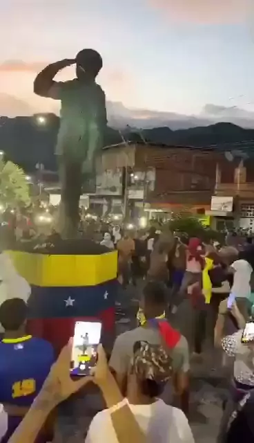 🇻🇪Durante las protestas en Venezuela se han visto imágenes de los manifestantes echando abajo estatuas de Hugo Chávez. 🇬🇧During the protests in Venezuela, images have been seen of demonstrators tearing down statues of Hugo Chávez. #viraliza #maisviews #noticias #mundo #Eleições
