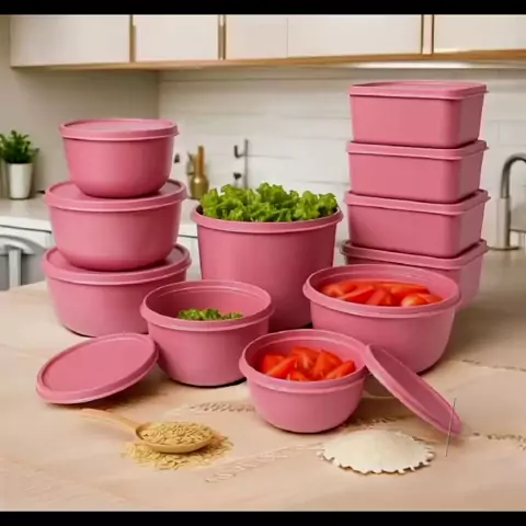 Confira Kit com 15 potes plásticos herméticos para cozinha id:BLK-GAF-WSJ #kit #potes #Plásticos #cozinharosa