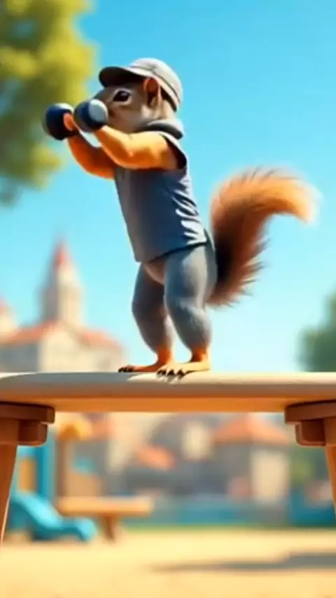 Exercícios e agachamento ao ar livre #animação #ia #viral #agachamento #esquilo