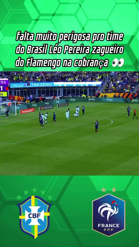 falta muito perigosa pro time do Brasil Léo Pereira zagueiro do Flamengo na cobrança #seleçãobrasileira #brasilXfrança #amistoso #esporteviral