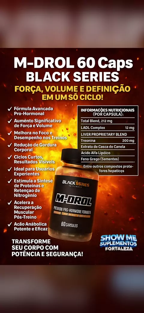 🔥 M-DROL 60 Caps – Black Series 🔥 Força, volume e definição em um só ciclo! Se você é um atleta avançado em busca de resultados extremos, o M-DROL Black Series é a escolha certa para turbinar seus ganhos musculares e levar seus treinos ao limite. Desenvolvido com uma poderosa fórmula pró-hormonal, ele acelera o crescimento muscular, melhora a força e reduz significativamente o percentual de gordura corporal. 💪🔥 ⸻ ✅ Fórmula Avançada Pró-Hormonal ✅ Aumento Significativo de Força e Volum