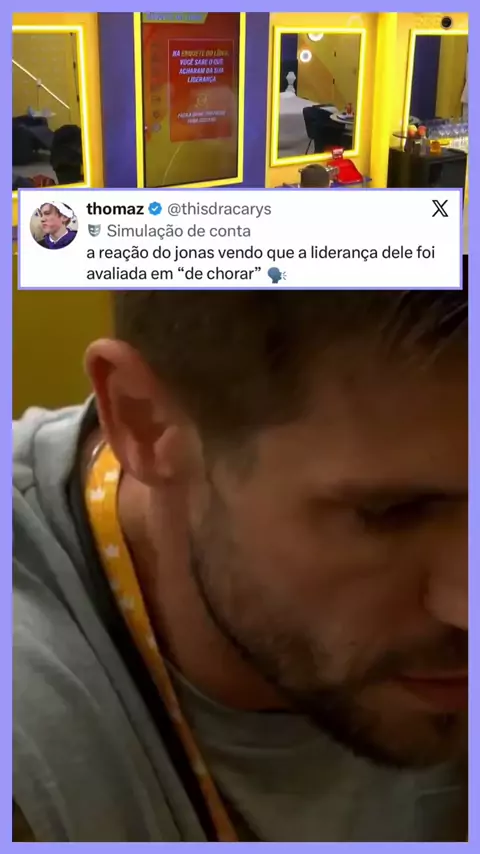 No quarto do líder, Jonas entra em clima de despedida por ser seu último dia na liderança da casa. Diante do painel com o resultado da enquete, ele descobre que sua liderança foi avaliada como “de chorar” e acompanha a informação em silêncio, reagindo ao ver a expressão destacada na tela. “a reação do jonas vendo que a liderança dele foi avaliada em ‘de chorar’”, escreveu um internauta ao compartilhar o momento nas redes. #BBB26 📽️ Imagem/Reprodução | TV Globo
