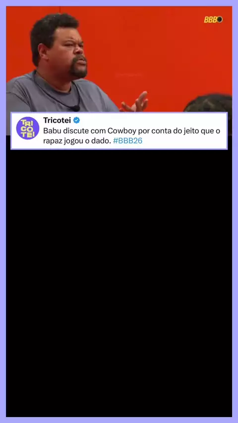Babu se envolveu em uma discussão com Cowboy durante a dinâmica após discordar do jeito que o brother jogou o dado. O momento gerou tensão entre os dois e chamou atenção de quem acompanhava a Prova do Líder. #BBB26 📽️ Imagem/Reprodução | TV Globo