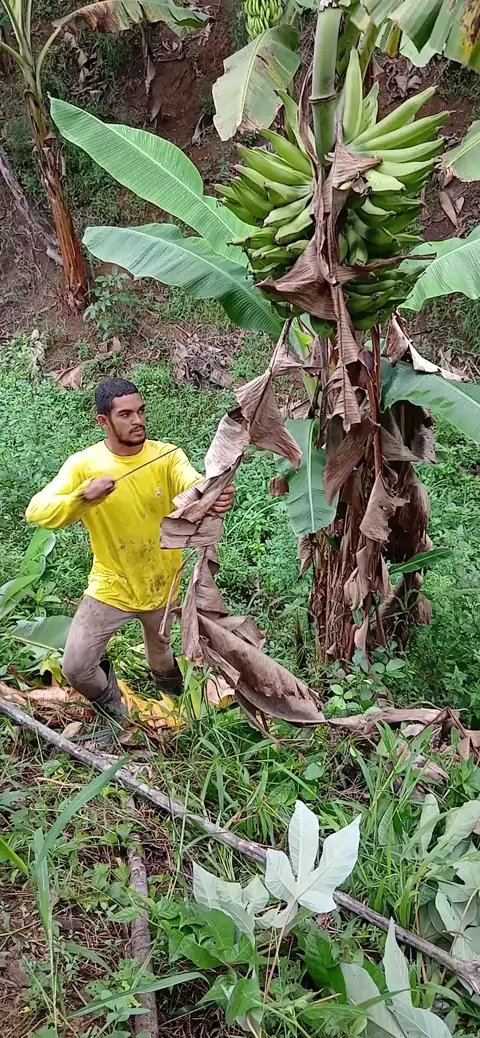cortando cacho de banana #agro #roça