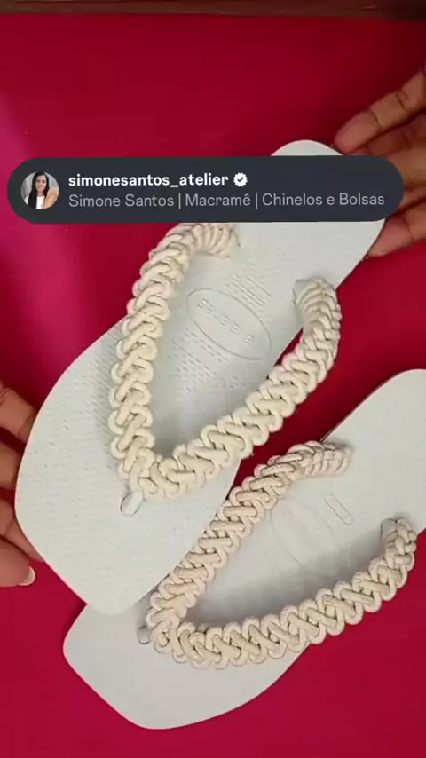 O que vocês acharam ? Feito com fio de malha, transforme cordões em obra de arte , expresse seu amor através dos nós, #macrame . @simonechinelosoficial Se você deseja criar lindos trabalhos em Macramê , trabalhar de casa e gerar renda , conheça nosso CURSO, Chinelos em Macramê . Whatsapp 79999305346 ou pelo link na bio.