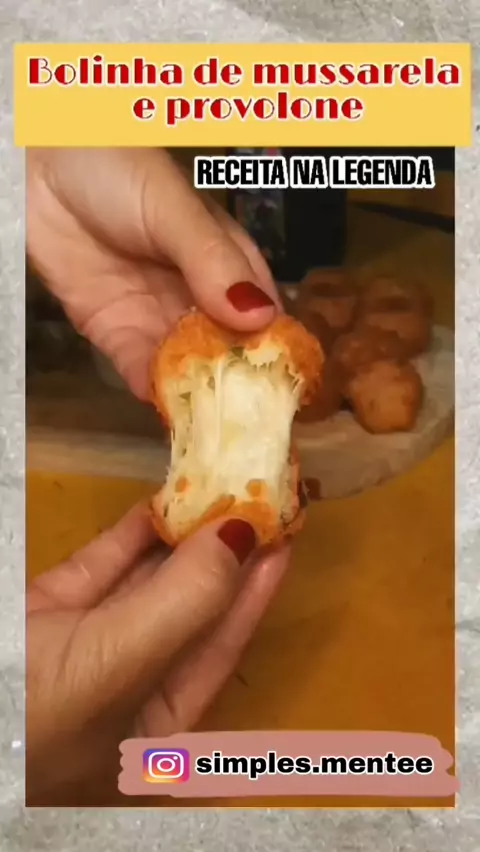 COM APENAS 4 INGREDIENTES!!! 😍 ▪️300g mussarela ▪️150g provolone ▪️4 colheres amido de milho ▪️1 ovo 🔸️Salsinha é opcional . MODO DE PREPARO ✔ Triture a mussarela e provolone e Misture com o amido de milho e ovo. Amasse com as mãos até ficar uma massa bem homogênea. ✔ Modele as bolinhas e frite em óleo bem quente. Beijos, Gi! #KwaiConquistar100k #receitas #Receita #receitasfaceis #dica
