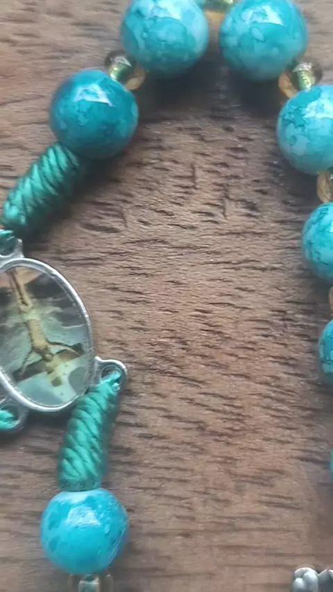 Kalung Rosario 77x Bapa Kami, Motif Marmer Premium warna hijau kebiruan. #rosario #rosario77bapakami #imankatolik #rosariomarmer
