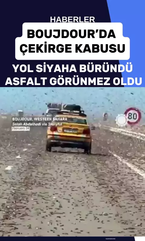 🔵 Fas’ın Boujdour kenti yakınlarında dev çekirge istilası yolu kapladı. ➖️ Sürü, araçlara çarparak asfaltı tamamen örttü.#sondakika #haber #gündem #keşfet #KwaiAileözelliği