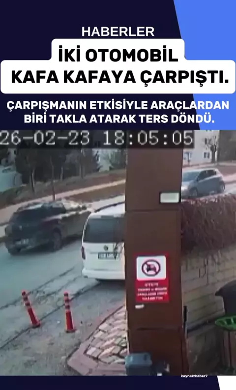 İki otomobil kafa kafaya çarpıştı. 🔄 Çarpışmanın etkisiyle araçlardan biri takla atarak ters döndü.#sondakika #haber #gündem #keşfet #KwaiAileözelliği