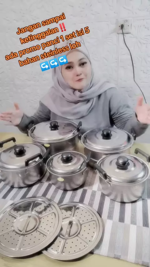 Promo panci set isi 5 bahan steinless‼️📢📢 klik order sekarang yuk atau joint live ku yah 🤩🤩🤩 #panci #pancisteinless #shopmaster #panciset #pancisetstainless #pancisetmurah ゚viral #pppppppppppppppppppppp ゚ #viralvideo #viral_video #viral
