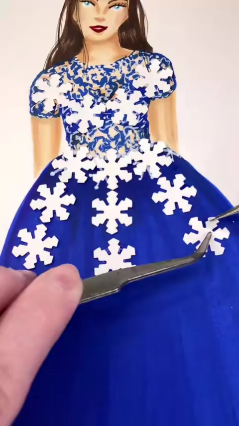 Replying to @Hm Here’s the final version of the gown 💙 A fun snowflake ball gown ❄️#asmrart#widemarkers#markerasmr#satisfyingart#fashionillustration#oddlysatisfyingvideo