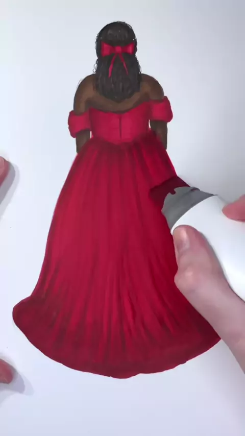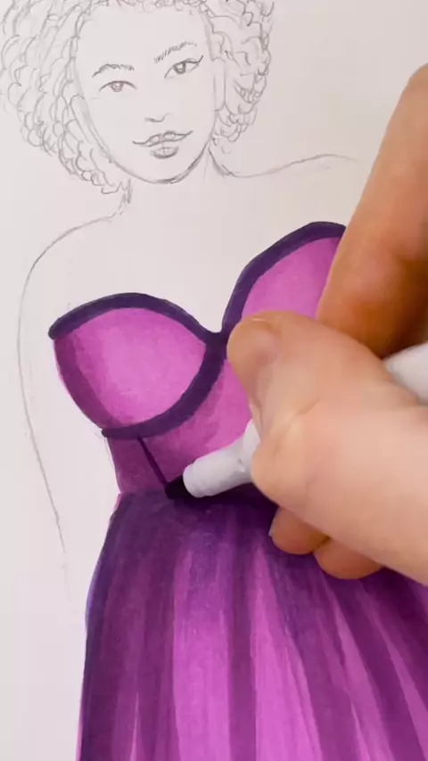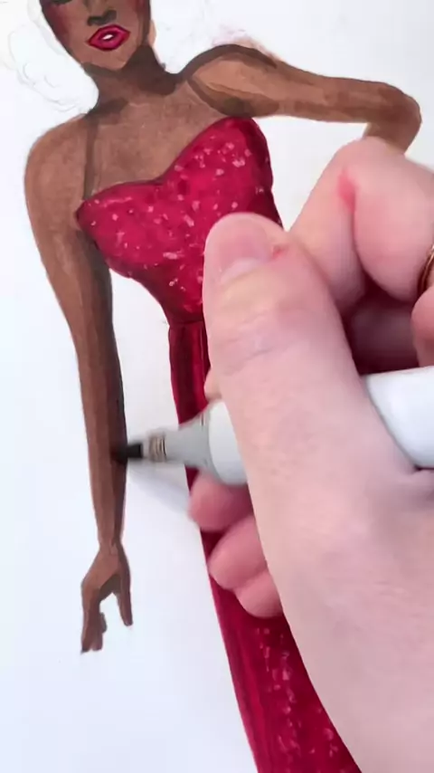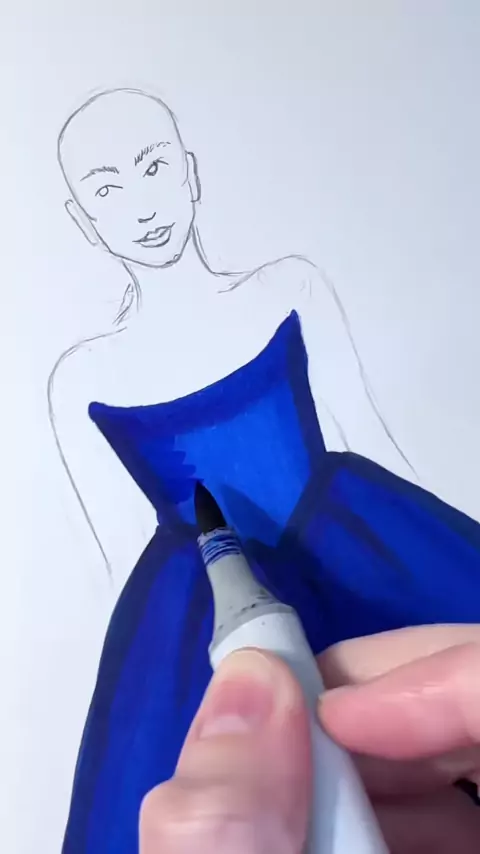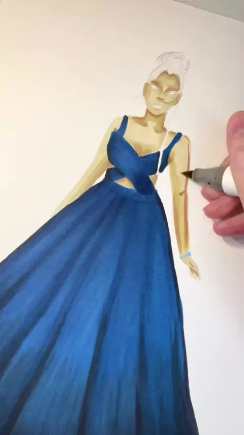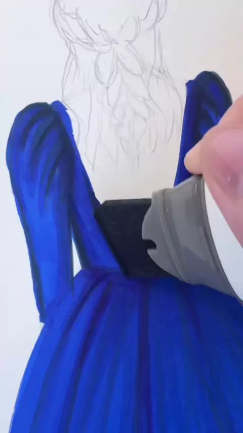 Replying to @Imking.l Wide markers are great for filling in large spaces like the skirt of this ball gown 💙 Drawn using Copic and Ohuhu alcohol markers#asmrart#satisfyingart#widemarkers#disabilityart#fashionillustration