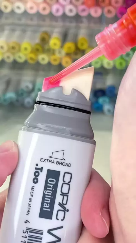 Replying to @The Quantum Garden Finally filling two colors in one wide marker! What color should I fill next? Filling an empty Copic Wide alcohol marker with Copic marker refill FRV Fluorescent Pink and Ohuhu refill PB7 Pastel Blue#widemarkers#satisfyingart#asmrart#oddlysatisfyingvideo