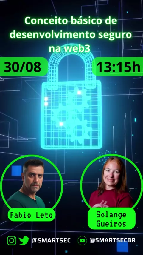 Live daqui a pouco as 11:30 no canal do Sandro Cabrales sobre Segurança na web3, não percam !