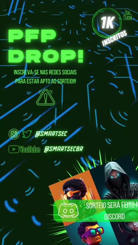 Agradeço pelo apoio em nossa jornada para 1000 inscritos no canal do YouTube! Quando atingirmos essa meta, teremos um sorteio no Discord com NFTs e PFPs SmartSEC avaliados em mais de 500 MATIC no total. Junte-se a nós e compartilhe o #smartsec1k para fortalecer nossa comunidade!