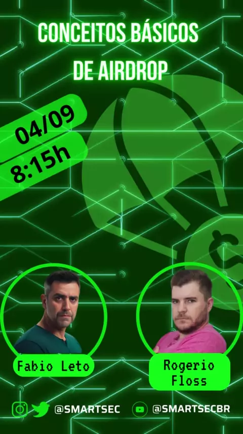 Amanhã às 8:15 horas em nosso canal do youtube teremos uma live educacional sobre conceitos básicos de Aidrops com o Rogério Floss o Guri das Cripto não percam ! #smartsec1k