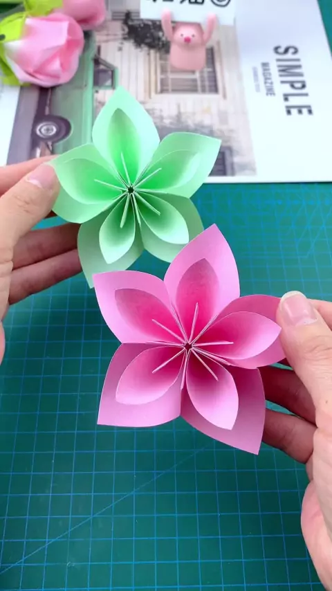 A primavera está chegando, dobrando uma pequena flor de incrível. Tutorial de origami manual
