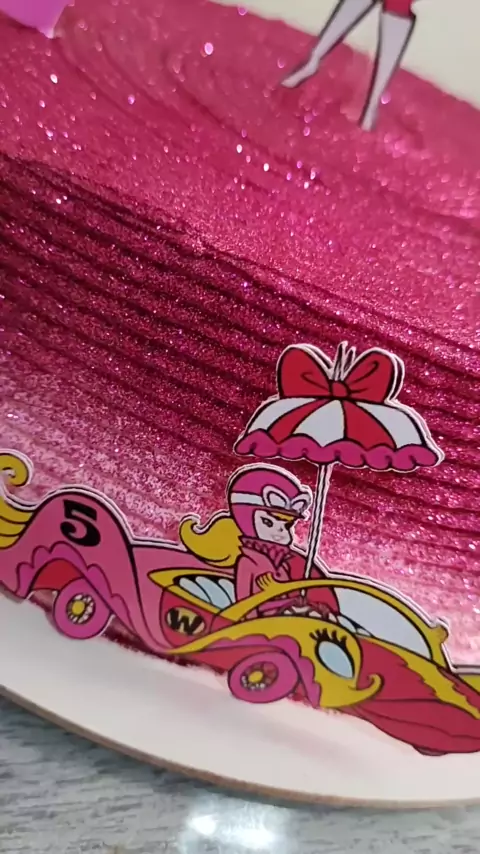 Bolo em chantininho Tema Penélope Charmosa Finalização em glitter