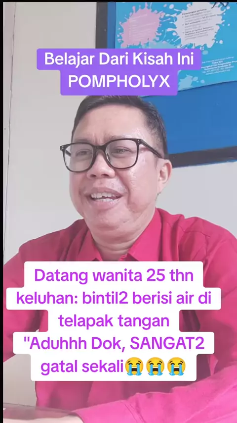 Pompholyx dikenal juga dengan istilah eksim dishidrotik atau dishidrosis. Bila tidak ditangani dengan baik, penderita pompholyx bisa terserang infeksi bakteri akibat menggaruk area kulit yang terkena lepuhan. Infeksi ditandai dengan luka lepuh yang mengeluarkan nanah, atau tertutupi kulit yang mengeras. #edukasikesehatan #edukasi #pompholyx