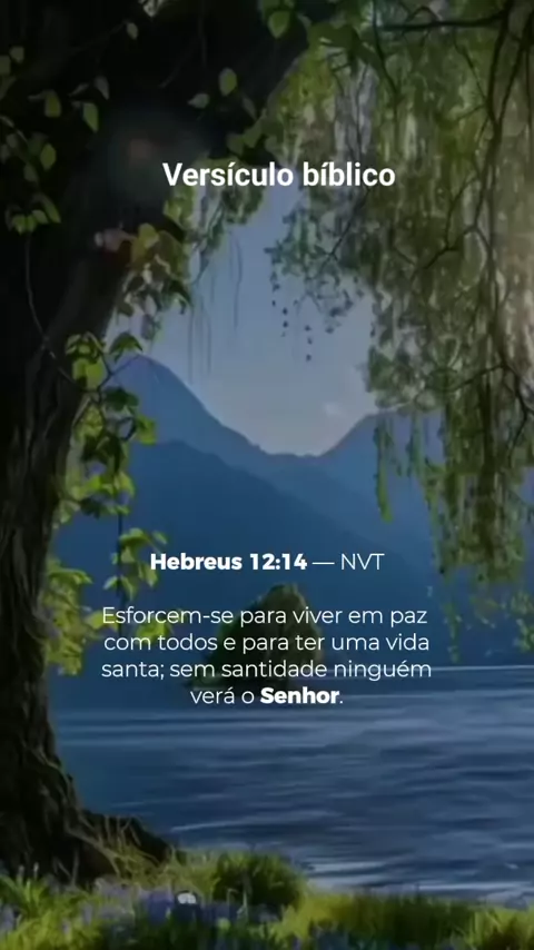 Versículo bíblico, Hebreus 12-14. Esforcem para viver em paz com todos sem santidade ninguém verá o Senhor. #Versiculobiblicoreflexaoelouvor #versiculo #reflexão #ParaRefletir #MotivacaoeReflexao