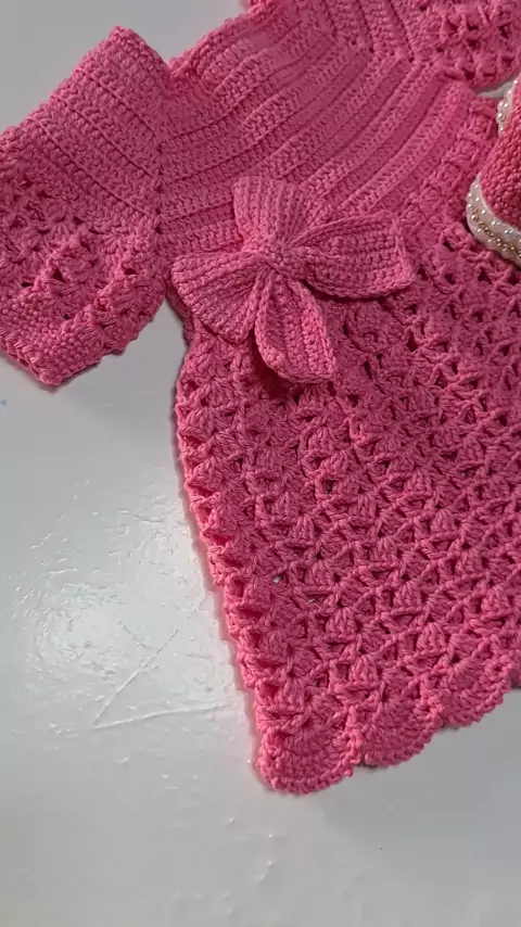 vestidinho em crochê cor de rosa #luisabrunicrochê #crocheterapia #roupaslindas #feitoamão #crocheperfeito