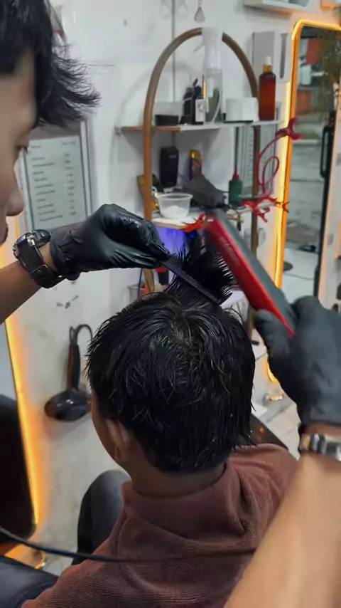 Solusi rambut ikal, keriting, kering, gelombang, ngembang dan rusak? Keratin Treatment dong🔥 @ajid99#keratin#keratintreatment#lampung#barbershop