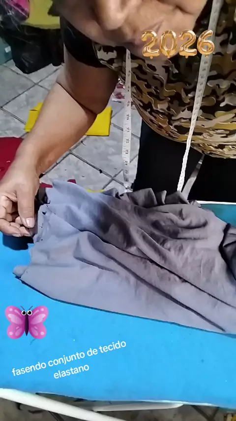 conjuntinho do dia a dia só tira as medidas com pedaços de tecido elastano